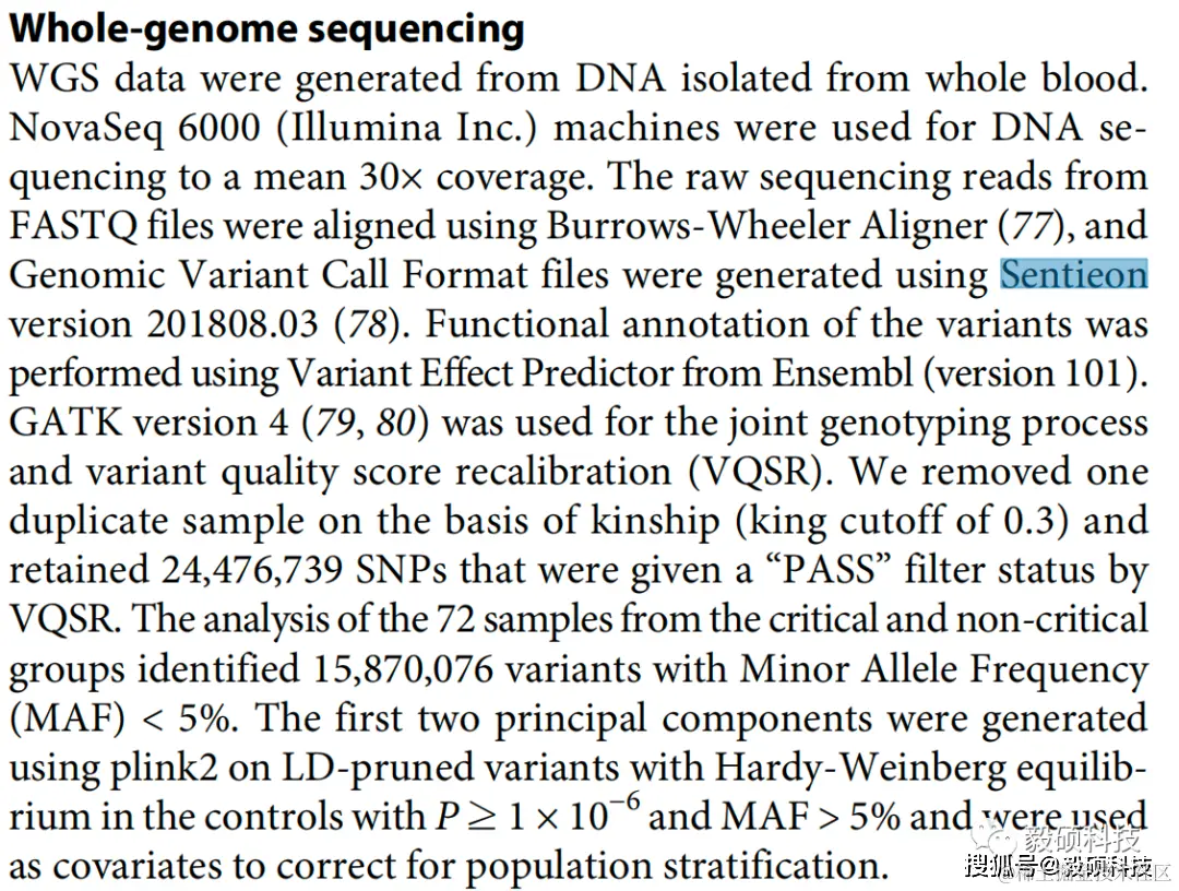 在该研究中,研究者使用Sentieon软件进行胚系变异检测。
