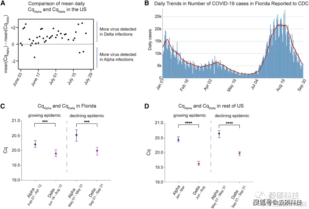 该研究通过对在美国各地收集的 74,348 个 SARS-CoV-2 阳性样本的测序和分析表明:与阿尔法变体相比,Delta变体的传播性增加可能是由于Delta变体能够在感染早期建立更高的病毒载量。