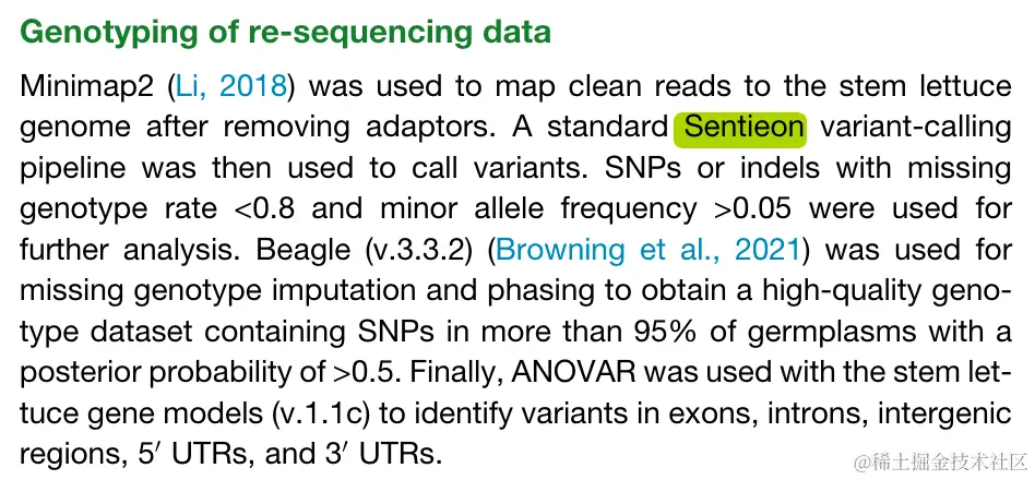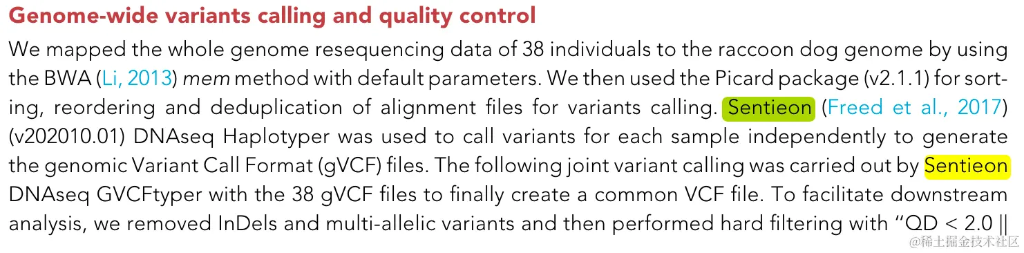 在该研究中,研究者使用Sentieon软件进行胚系变异检测。