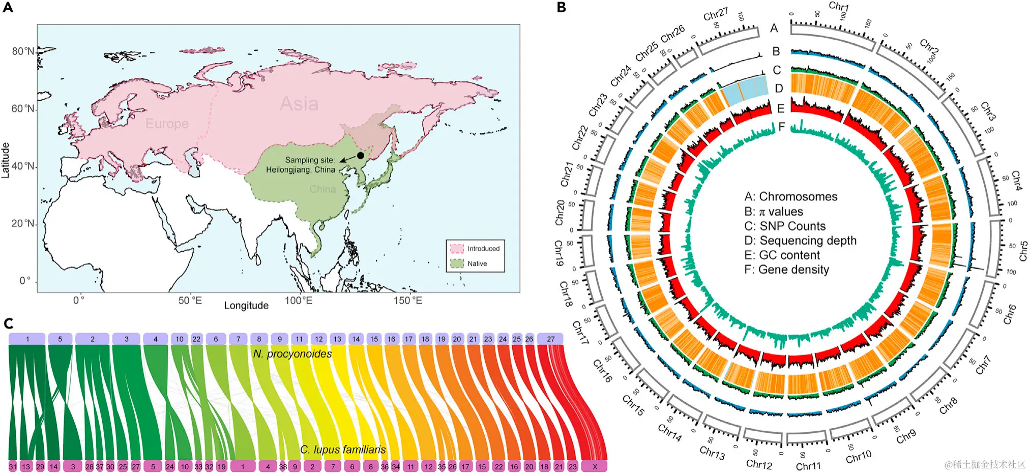 在这项研究中,研究者利用从中国黑龙江采集的雄性个体组装了浣熊犬的染色体组。探索了浣熊犬免疫、繁殖、杂食、冬眠和入侵等生物特征的可能遗传基础。这项研究的结果将为今后研究该物种野生种群的进化、生态和管理提供有用和宝贵的基因组资源。