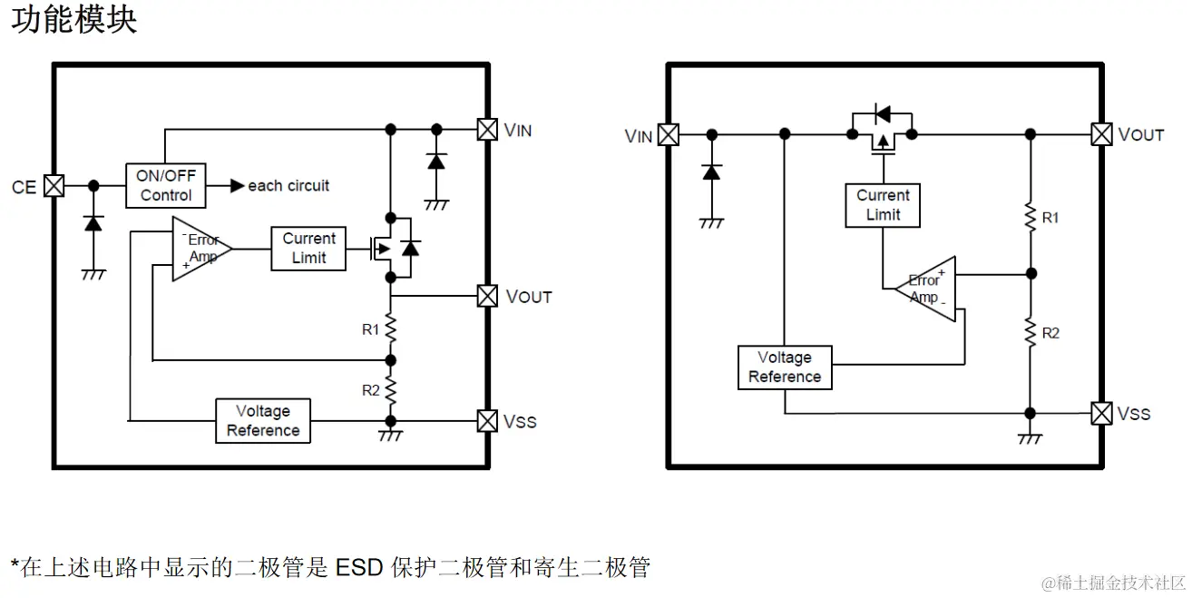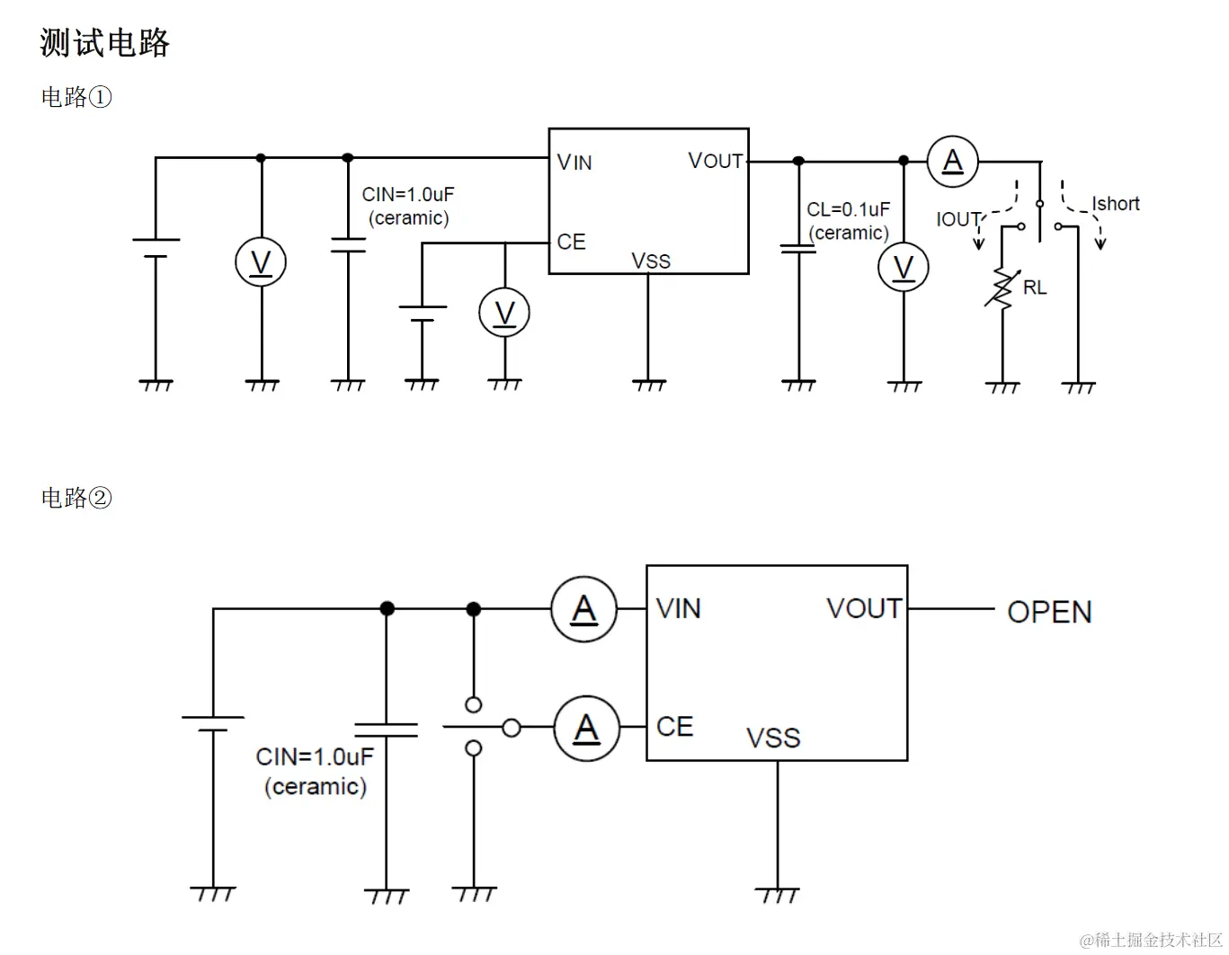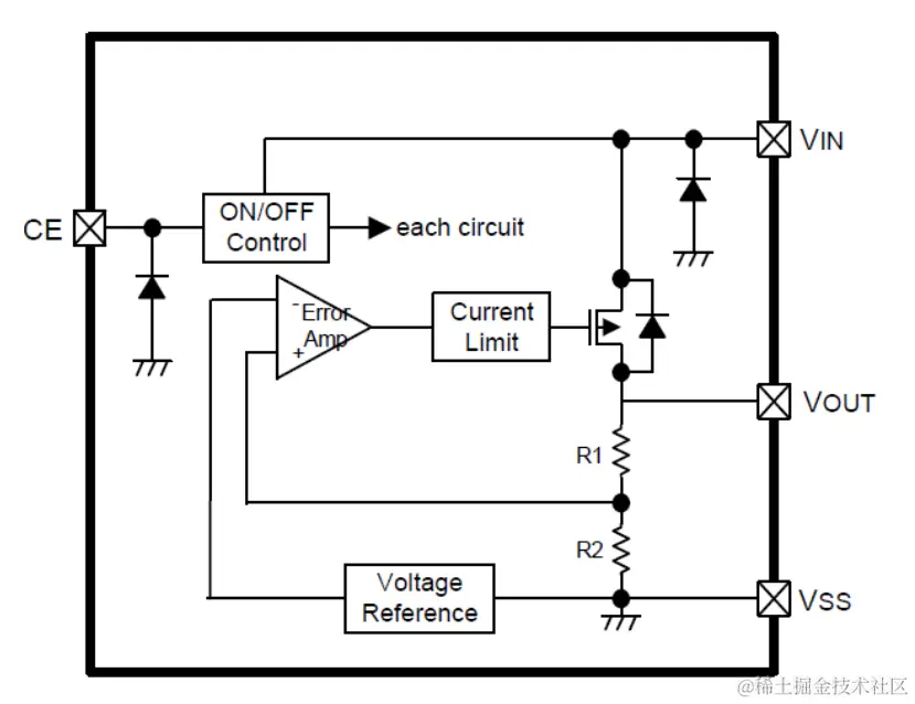 此外,为了防止瞬态响应引起的下冲和过冲,建议 VOUT 引脚和 VSS 引脚之间采用 0.1~1.0uF 的输出电容(CL)。