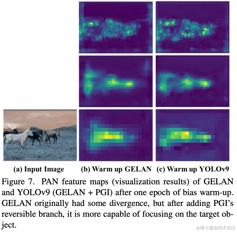 图 7 说明了 PGI 能否在训练过程中提供更可靠的梯度,从而使用于更新的参数能够有效捕捉输入数据与目标之间的关系。