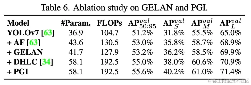 图 6 显示了从基准 YOLOv7 到 YOLOv9- E 逐步增加组件的结果。