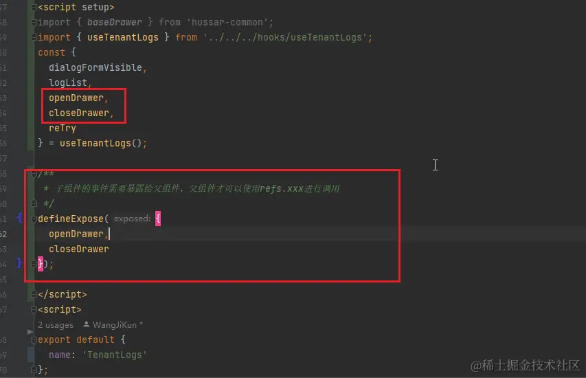 注:defineExpose一定要在变量和方法声明定义之后再使用。