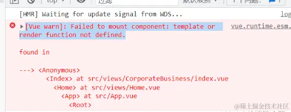 [Vue warn]: Failed to mount component: template or render function not defined.报错解决