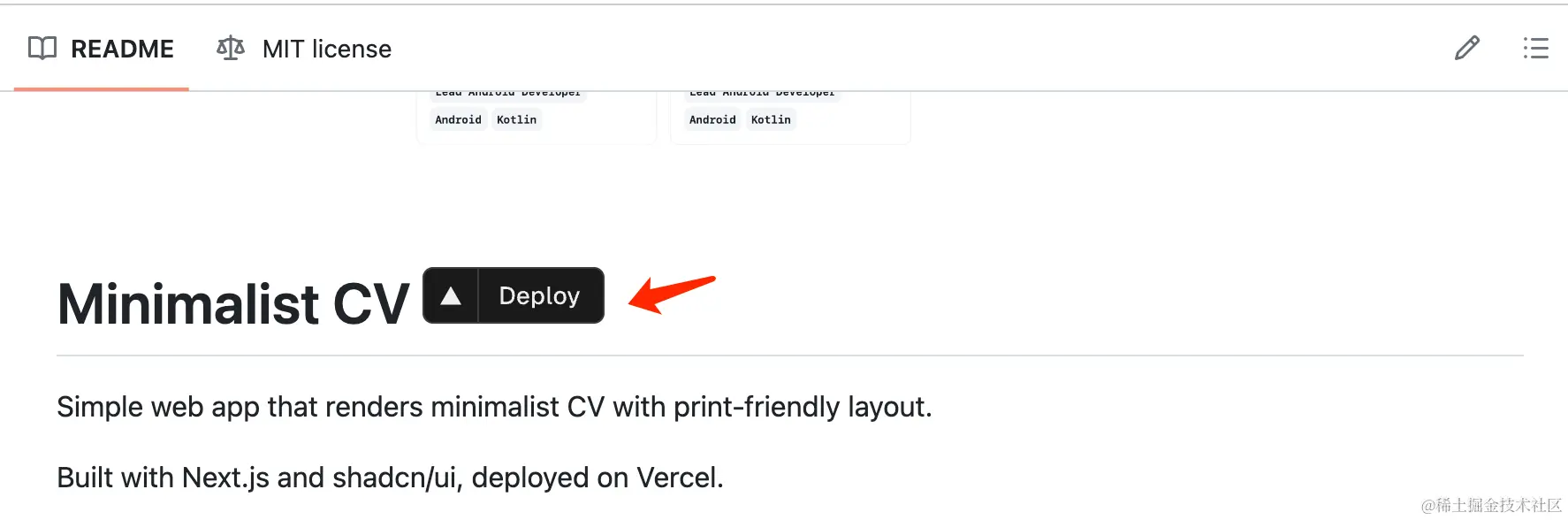 首先,我访问了上述的Github仓库,并找到了下方图片中的Deploy按钮,会引导到了Vercel的官方网站。