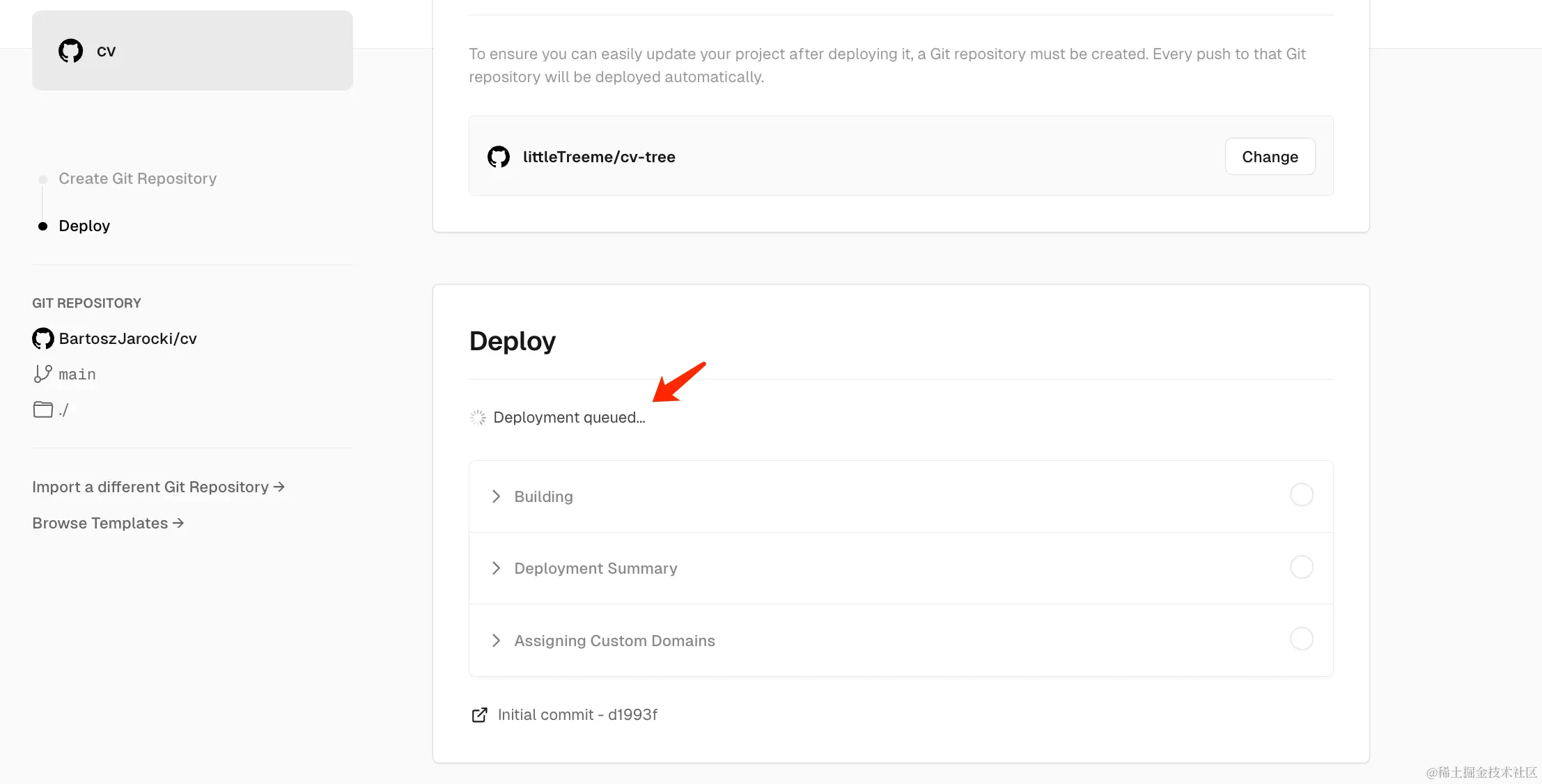 创建成功后,Vercel立刻启动了部署进程。