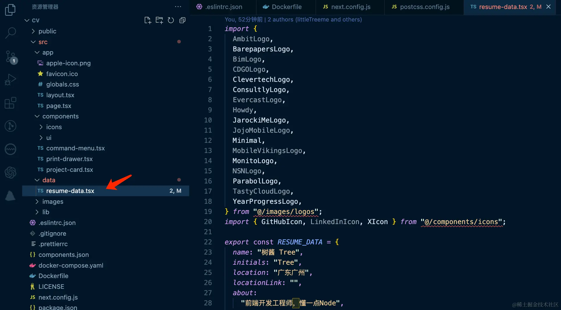 当构建成功后,通过访问之前Fork的仓库,编辑配置文件修改简历的内容。这个配置文件位于👇