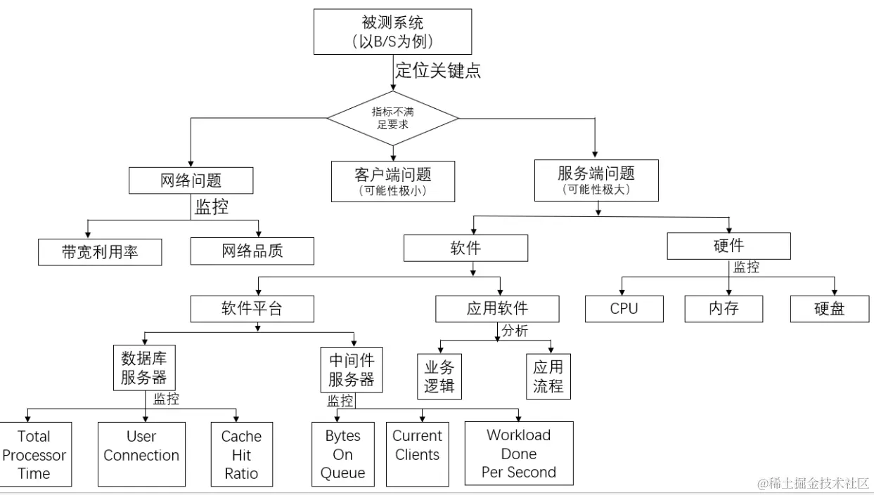 如图所示,性能测试的问题定位与分析有一定的了流程及方法