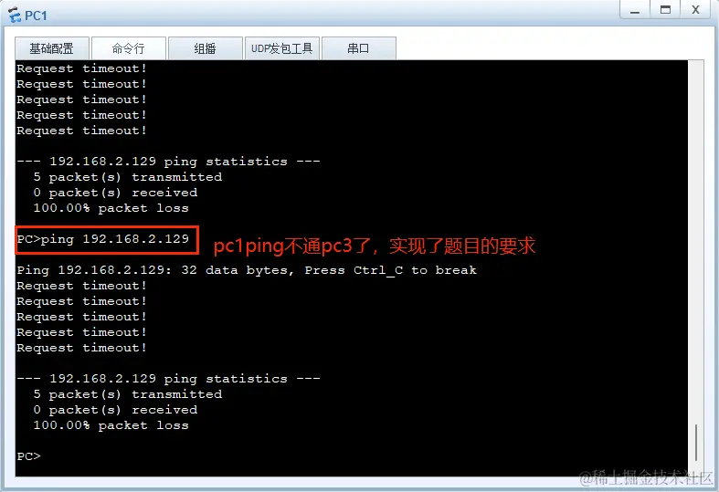 - 在SW3A的g0/0/1应用acl实现pc1禁止访问pc3: