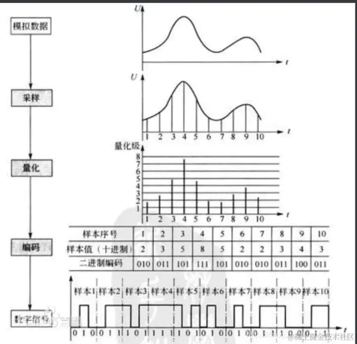 - 它传输的是PCM音频数据(即脉冲编码调制),PCM音频数据是未经压缩的音频采样数据裸流,它是由模拟信号经过采样、量化、编码转换成的标准数字音频数据。I2S是音频数字化后数据排列的一种格式。