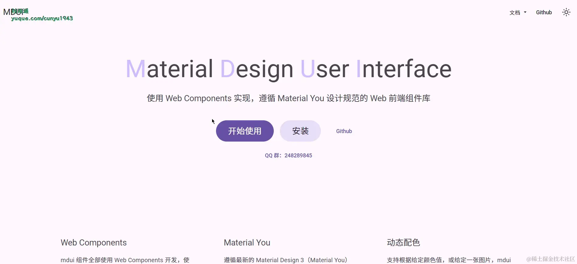 使用 Web Components 实现,遵循 Material You 设计规范的 Web 前端组件库。
