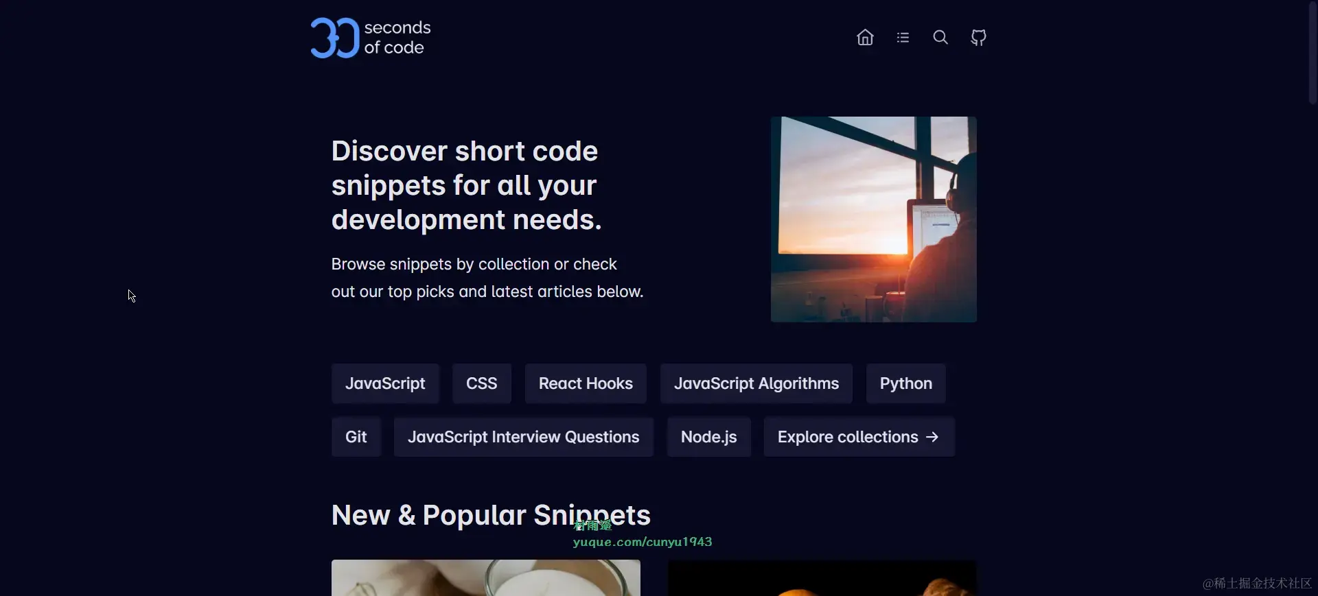 项目收集了实用的 JavaScript 代码片段,让你在 30 秒内就能掌握并运用。