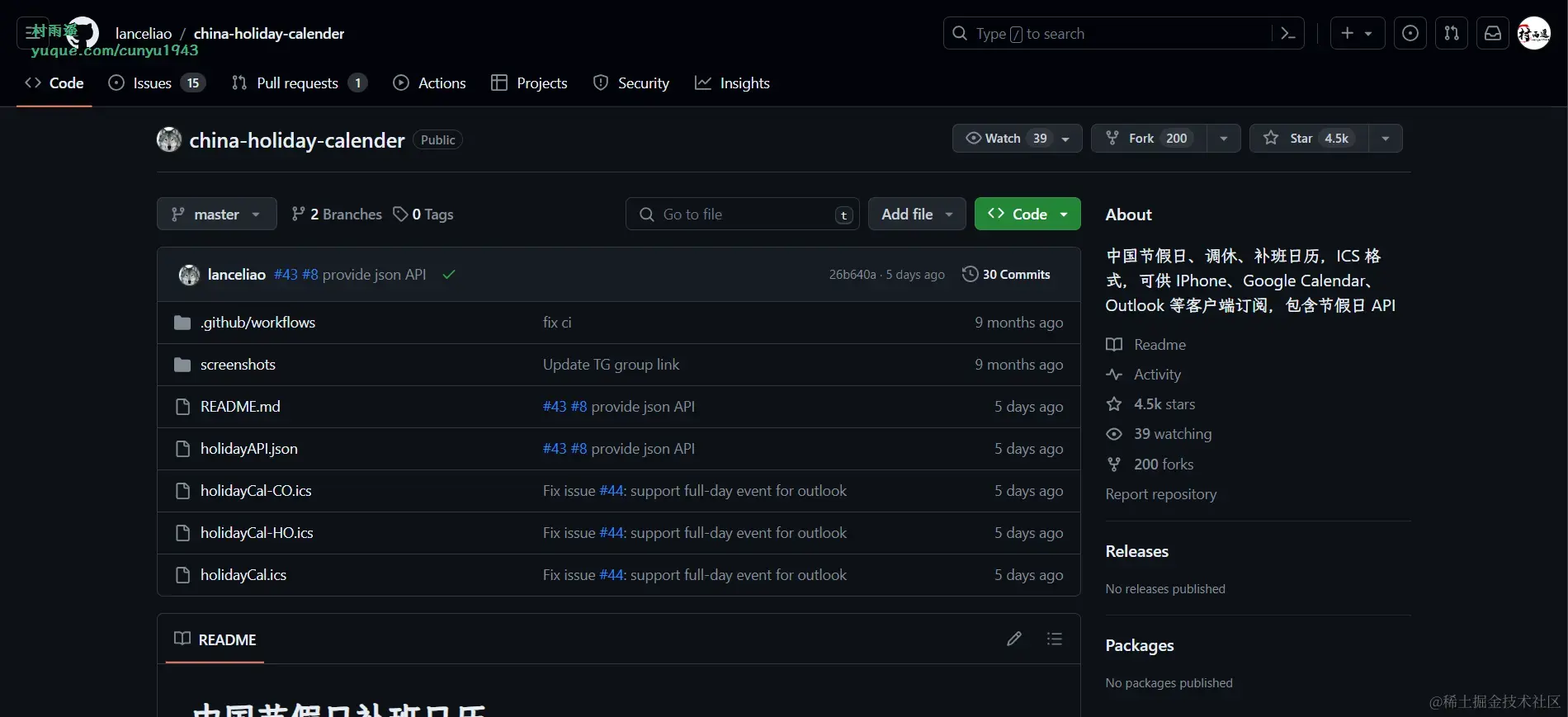 中国节假日、调休、补班日历,ICS 格式,支持 IPhone、Google Calendar、Outlook 等客户端订阅。