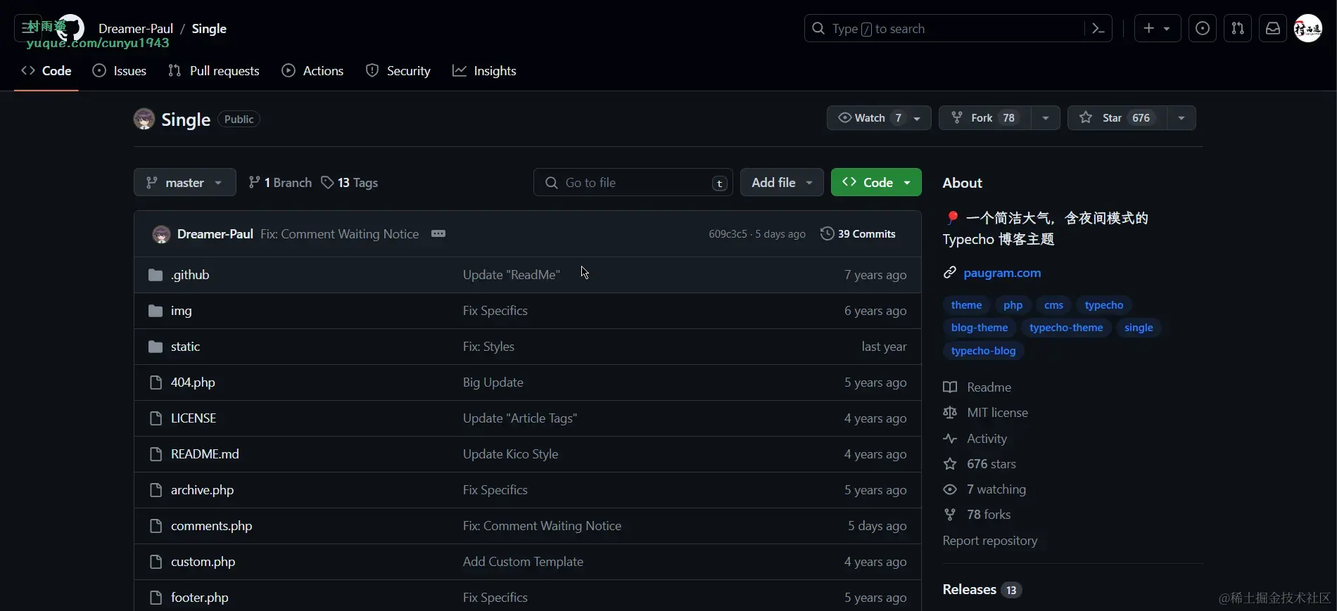 一个简洁大气,含夜间模式的 Typecho 博客主题。具有简洁大气、夜间模式、文章目录、图片灯箱、代码高亮、平滑滚动、无 JQ 库的特点。