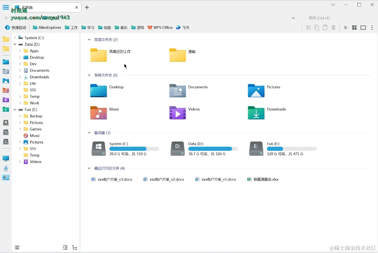一款能够替代“我的电脑”的文件管理软件。类 Chrome 界面设计,简洁美观。