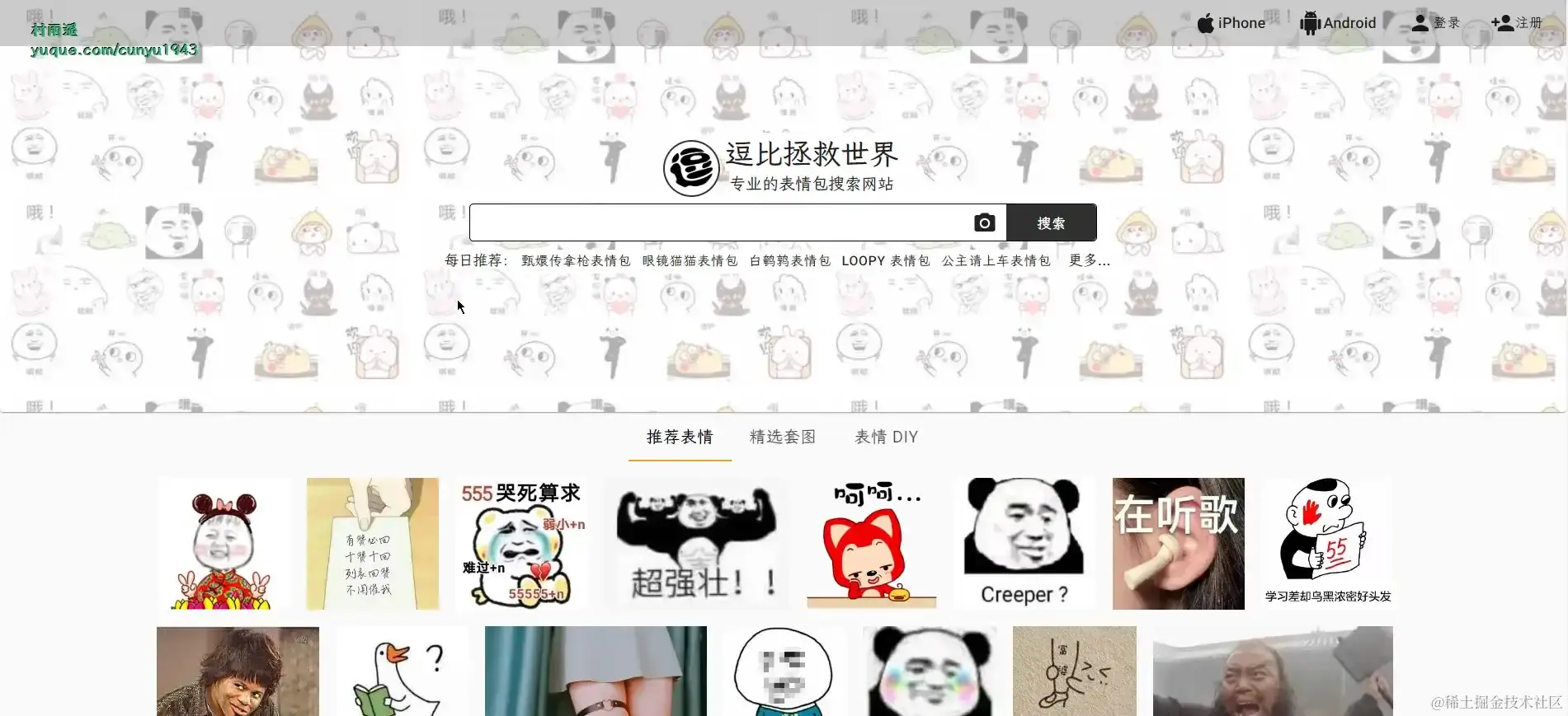 专业的表情包搜索网站,不仅有精选表情,还有精选套图以及表情自定义。