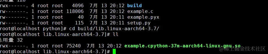 当然你也可以讲生成的c文件自己编译成so文件,通过以下编译命令就可以生成example.so的动态链接库
