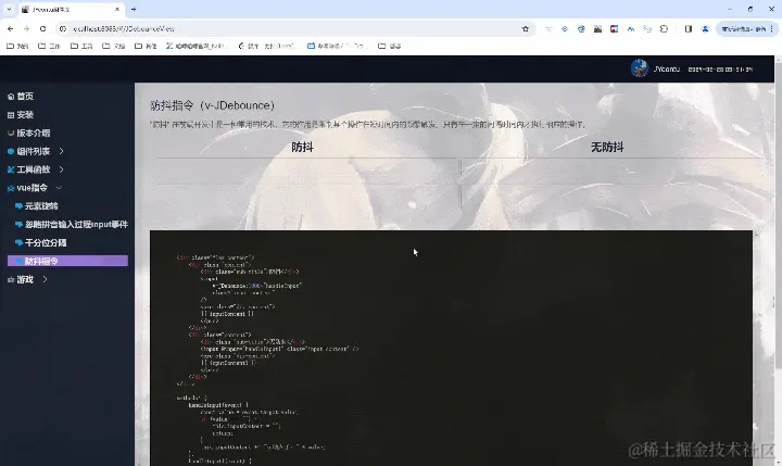 v-JDebounce:1000:这是一个自定义指令的绑定,JDebounce 是指令的名称,1000 是指令参数,表示延迟时间为1000毫秒。handleInput:这是一个函数名,用于处理输入框的输入事件。
