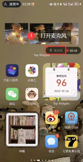 步骤3:录屏开始后,用户可以在屏幕上看到录制时间,以及麦克风图标。如果需要录制声音,请点击屏幕上的麦克风图标,使其处于开启状态。