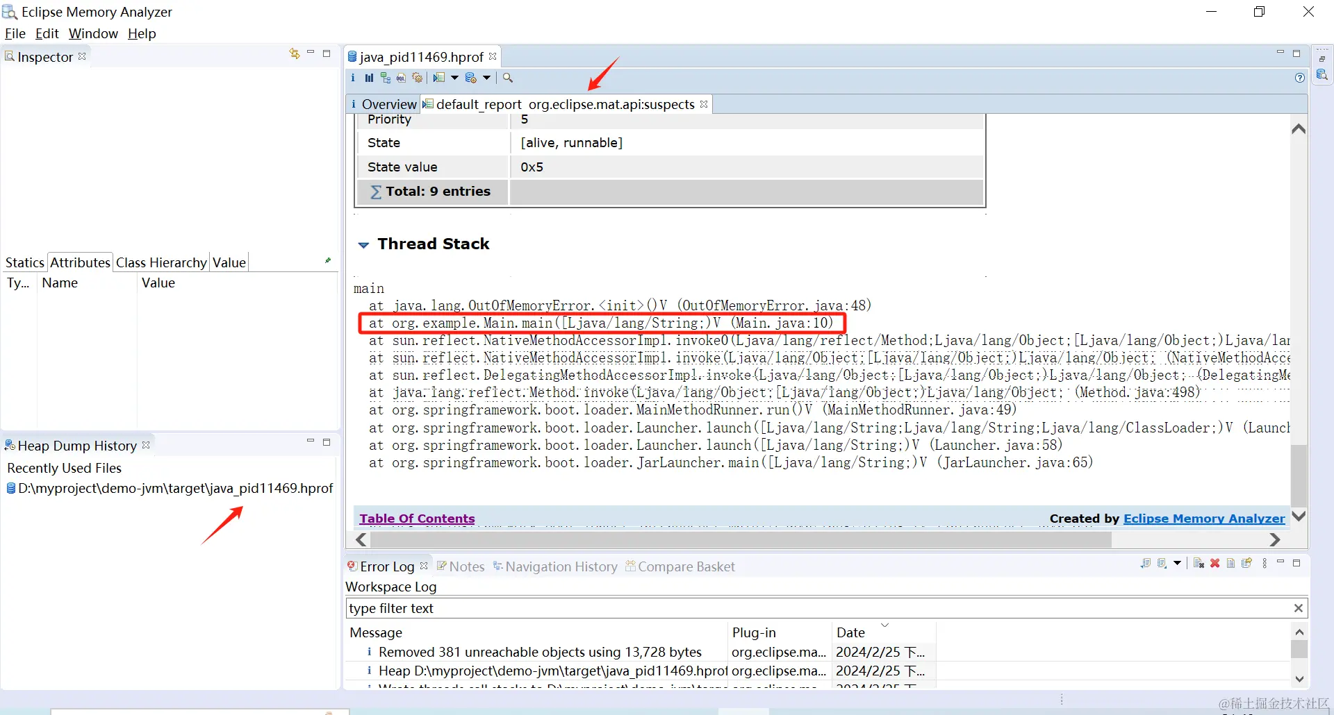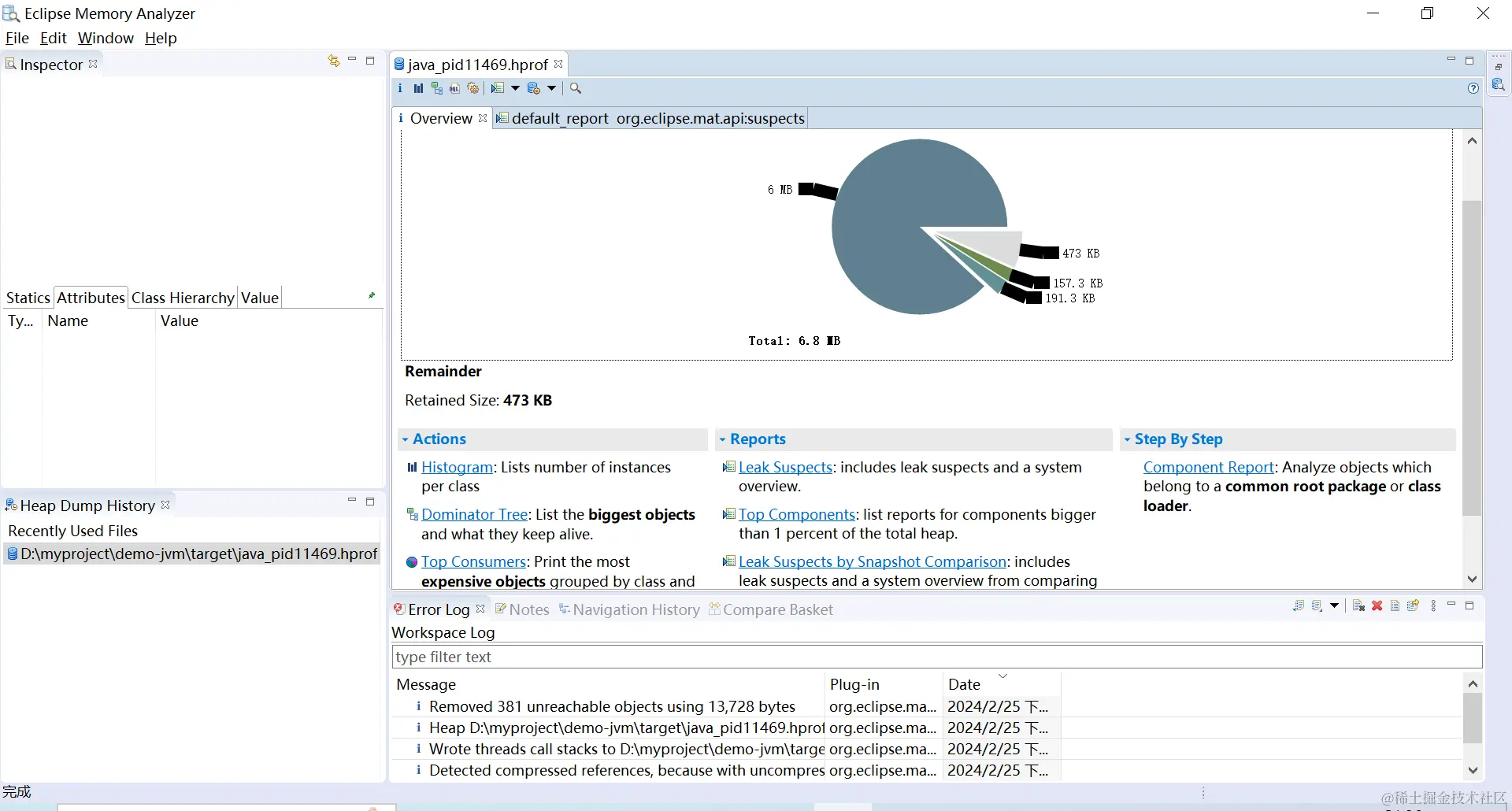 本地用mat工具导入并打开刚刚的转存文件,如下图: