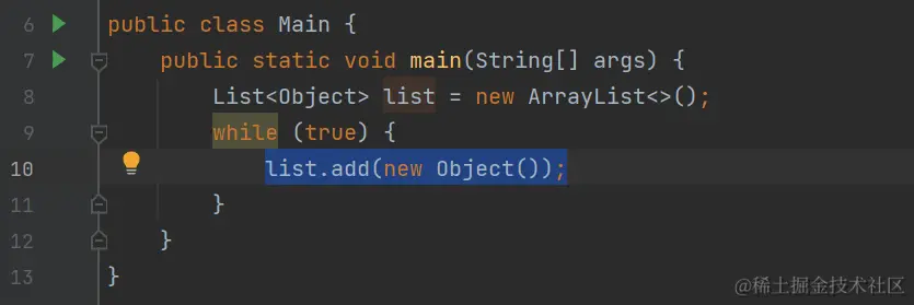 比如:我们在程序中写一个最简单OOM的例子。