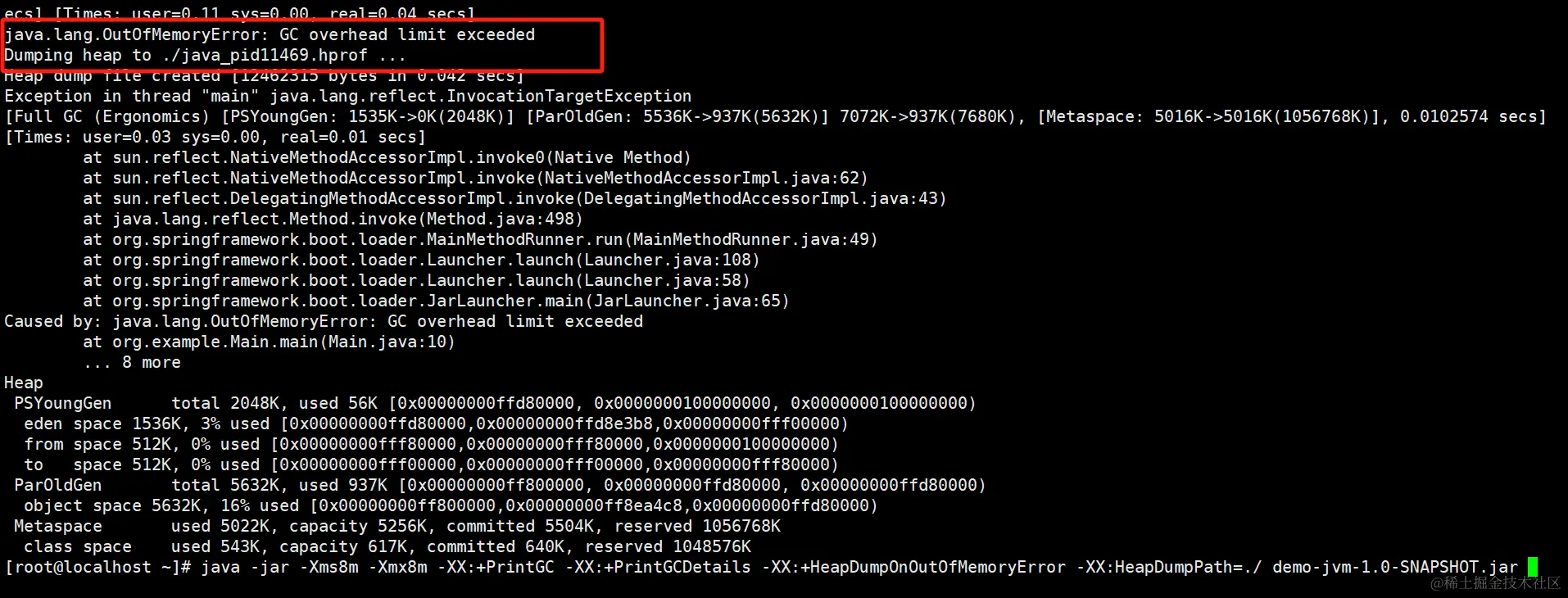 java -jar -Xms8m -Xmx8m -XX:+PrintGC -XX:+PrintGCDetails -XX:+HeapDumpOnOutOfMemoryError -XX:HeapDumpPath=./ demo-jvm-1.0-SNAPSHOT.jar