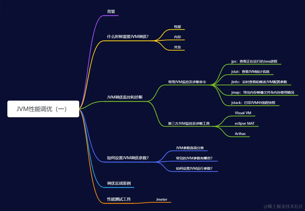 Java虚拟机(JVM)在Java技术体系中占据着核心地位。JVM调优能够显著提升应用的响应速度、吞吐量以及资源利用效率,从而保障系统的稳定高效运行。本章为JVM调优前置知识,主要介绍:什么时候需要调优?JVM如何监控和诊断性能、如何设置参数、常用的JVM参数等。