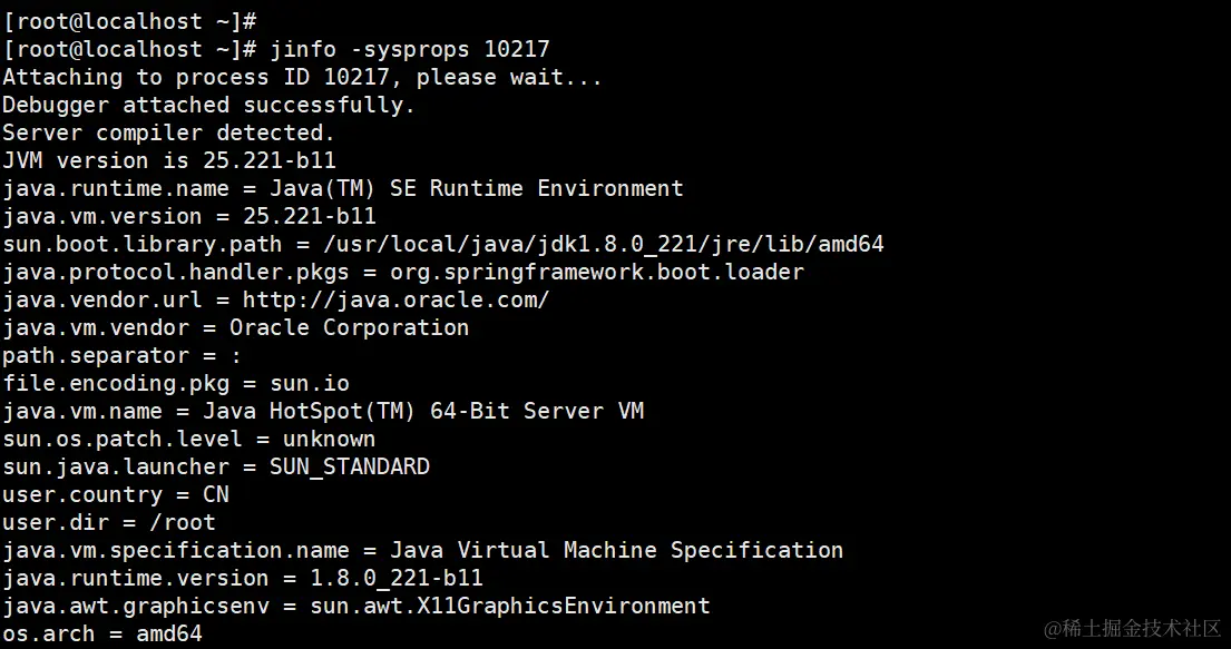 jinfo -sysprops 10217