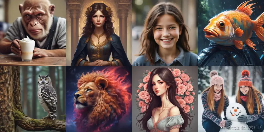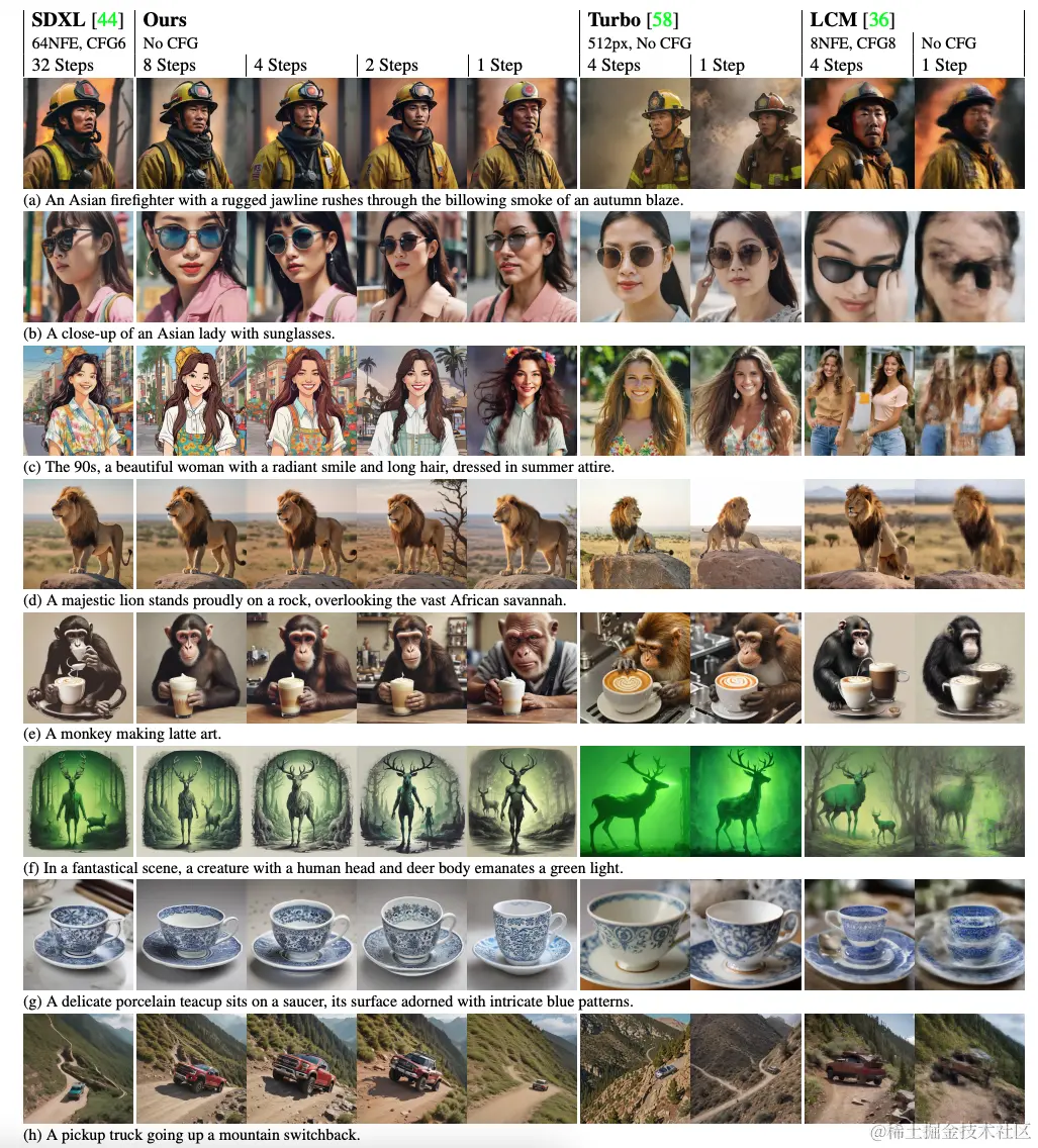 SDXL-Lightning模型支持1步、2步、4步和8步的不同推理步骤,推理步骤越多,生成的图像质量越高。在4步生成模式下,该模型能够生成极具细节和图文匹配度的高质量图像,如清晰呈现人物微笑、动物细毛等细节,展现了其在图像生成领域的卓越性能。