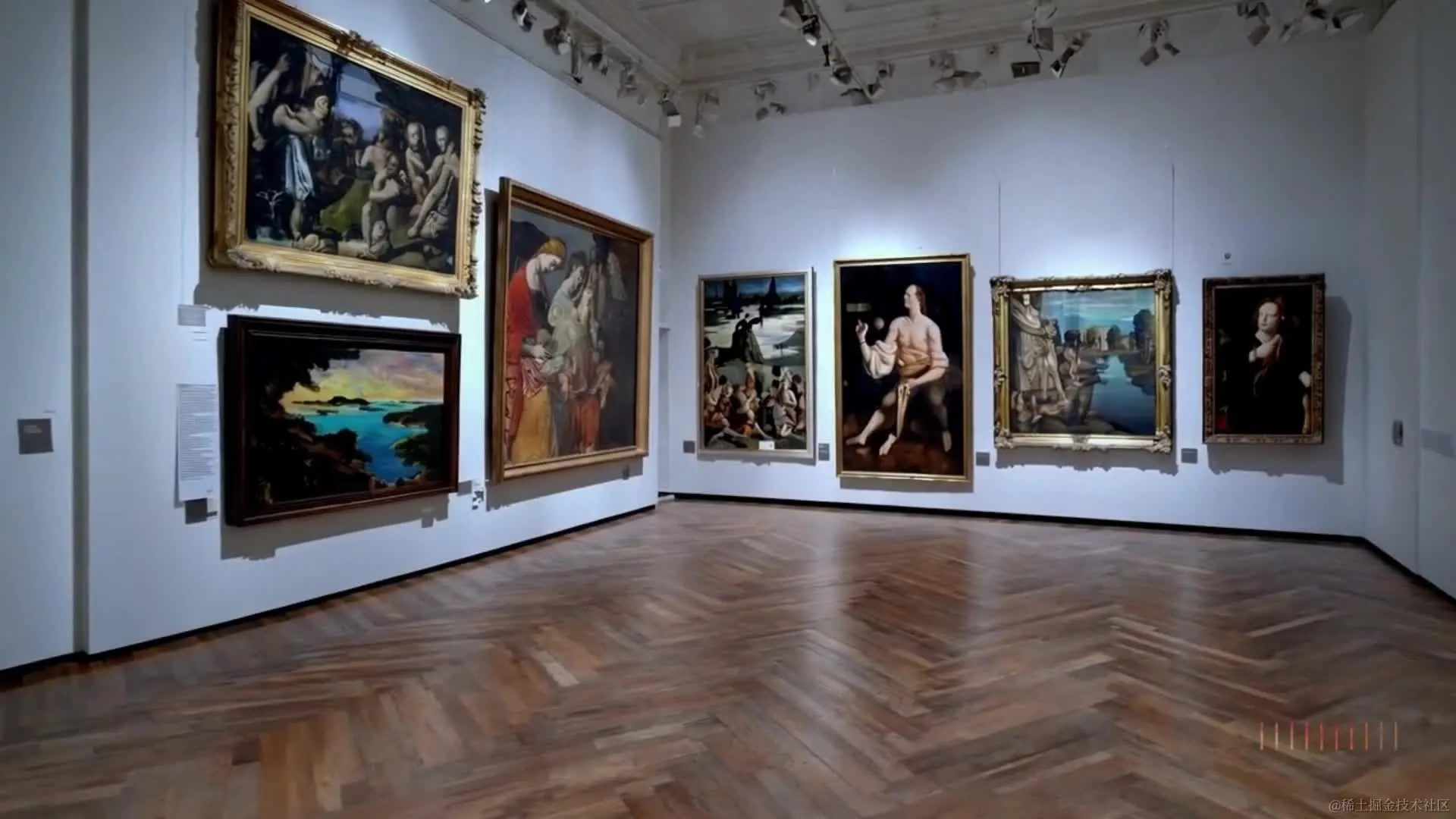 8.Prompt: Tour of an art gallery with many beautiful works of art in different styles.