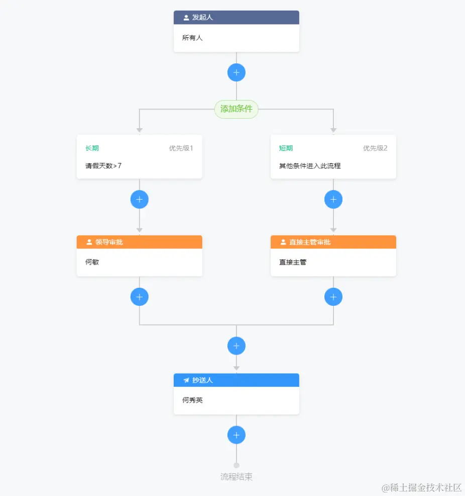 flowlong-designer是flowlong配套的流程设计器,仿钉钉飞书流程设计风格,支持顺序会签、并行会签、或签、票签、抄送、驳回、分配、转办、委派、跳转、拿回、撤销、加签、减签、认领、已阅、催办、沟通、终止等。