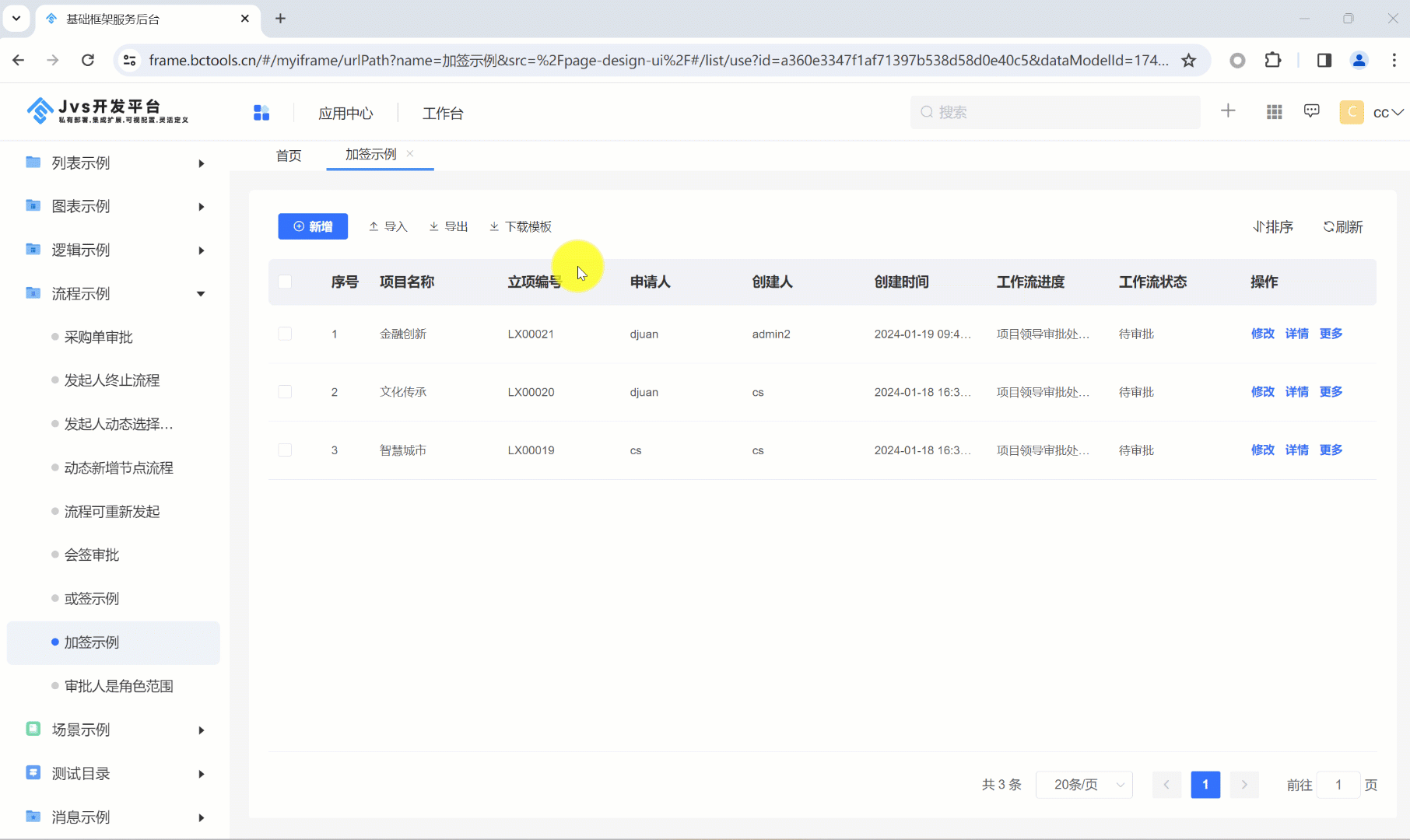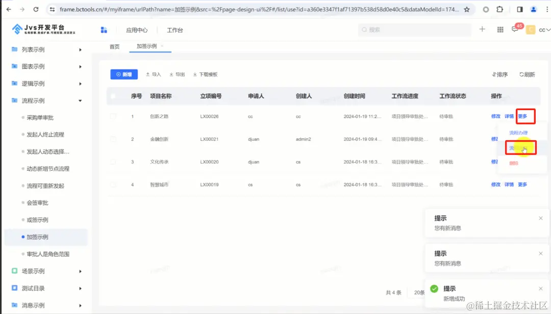 3、流程加签页面