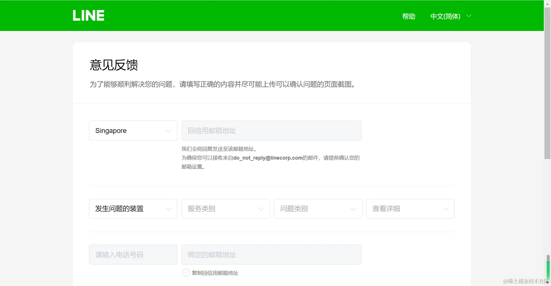 通过以下这个官方网址来向LINE的工作人员反馈你的情况