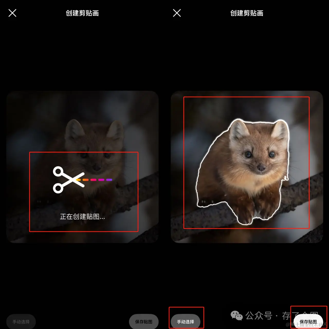 此时将会自动创建中,若是不满意也可以点击“手动选择”,选好之后点击右下角“保存贴图”