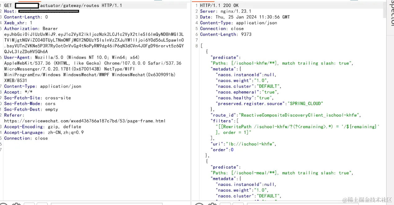 4.发现actuator/gateway/routes(Spring路由)可以访问,尝试Spring Cloud****Geteway Rce Nday利用