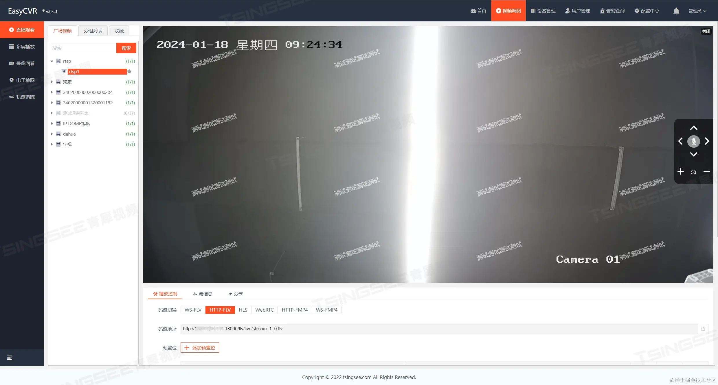 视频监控云平台EasyCVR能同时播放多路监控视频流,视频画面1、4、9、16个可选,还支持自定义视频轮播。平台能将接入的视频流进行汇聚、转码与多格式分发,可分发的视频流格式包括:RTMP、RTSP、HTTP-FLV、WebSocket-FLV、HLS、WebRTC、fmp4等,支持在手机、电脑、电子大屏、电视墙、小程序/微信端等多终端上展示与浏览,感兴趣的用户可以前往演示平台进行体验或者部署测试。