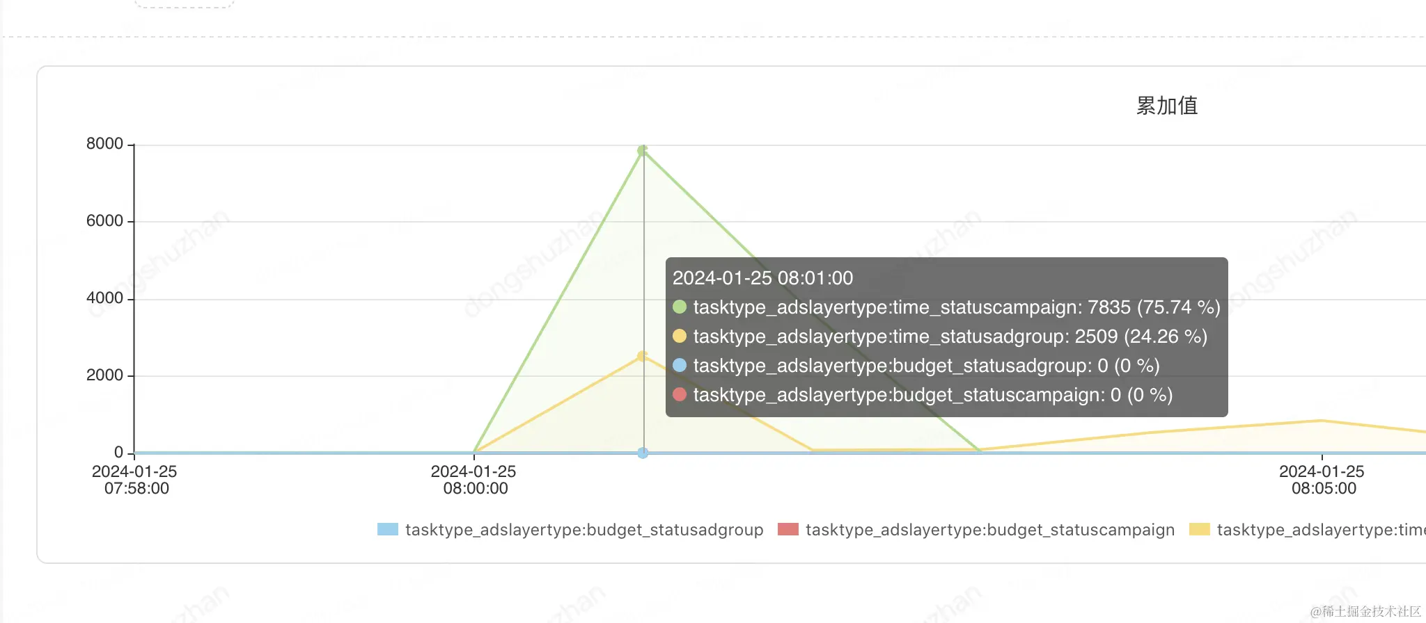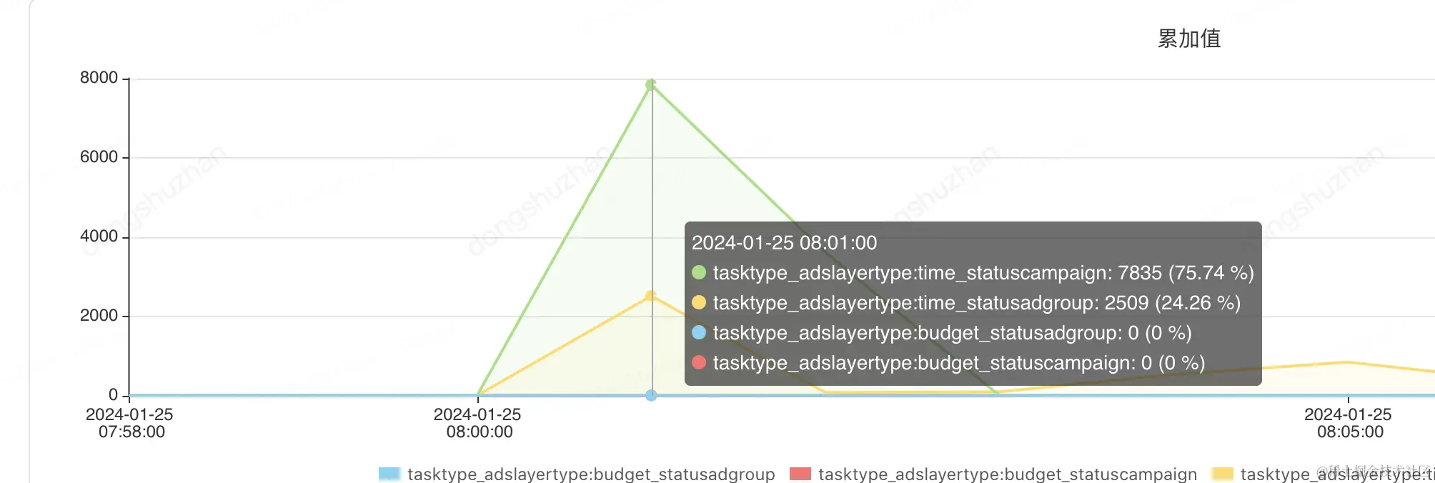 11点的时候计划和单元总共更新5000个,由于查询数据源的时候卡了时间戳范围,所以符合预期,查出来的个数基本就是要更新的记录。监控如下:
