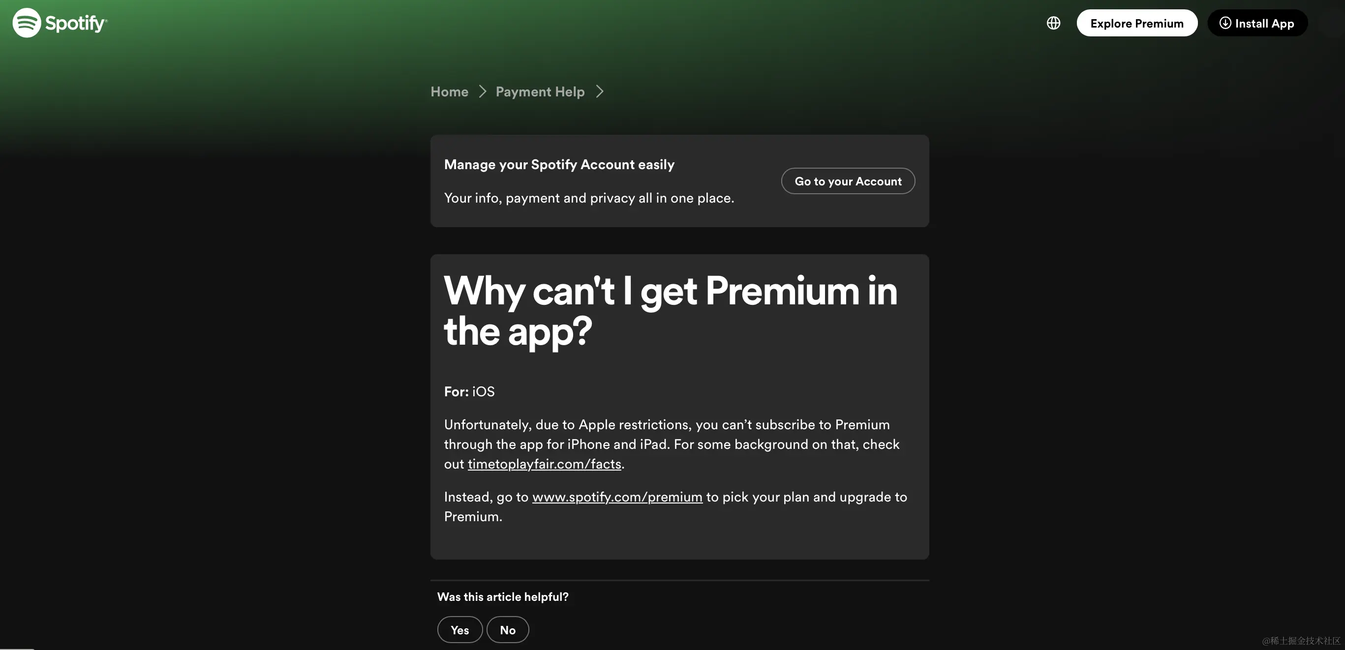 最后,Spotify提供了一个功能,让用户通过反馈来评估他们的知识库的有效性,简单地回答一个是/否问题。这只需要用户很少的努力,表明Spotify重视客户反馈,他们始终在努力改进。