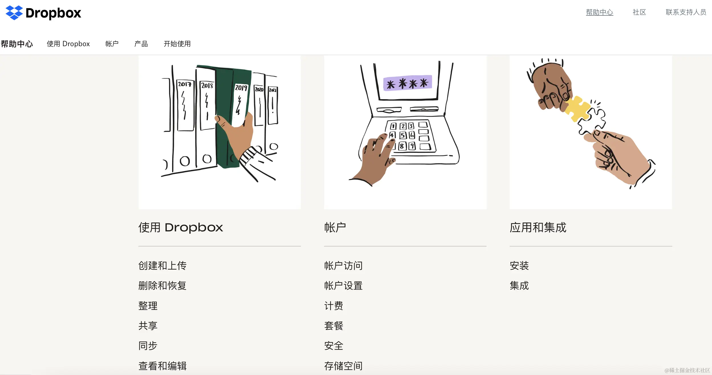 Dropbox旨在减少忙碌工作的现代工作空间是知识库做得正确的另一个例子。他们清晰的文字与视觉效果相结合,使他们的帮助中心成为一个真正卓越的寻找答案的地方。