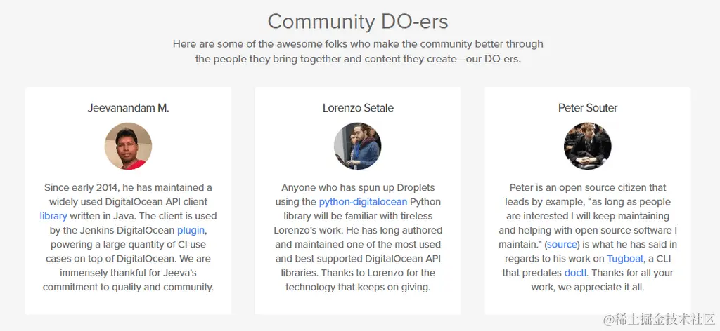 DigitalOcean 建设这样的一个社区就是按照这个依据此原则。重要的是,他们真的关心他们的社区,在乎社区的活跃度。以至于他们积极推广他们的顶级贡献者,或者他们喜欢称之为“社区 DO-ers”。