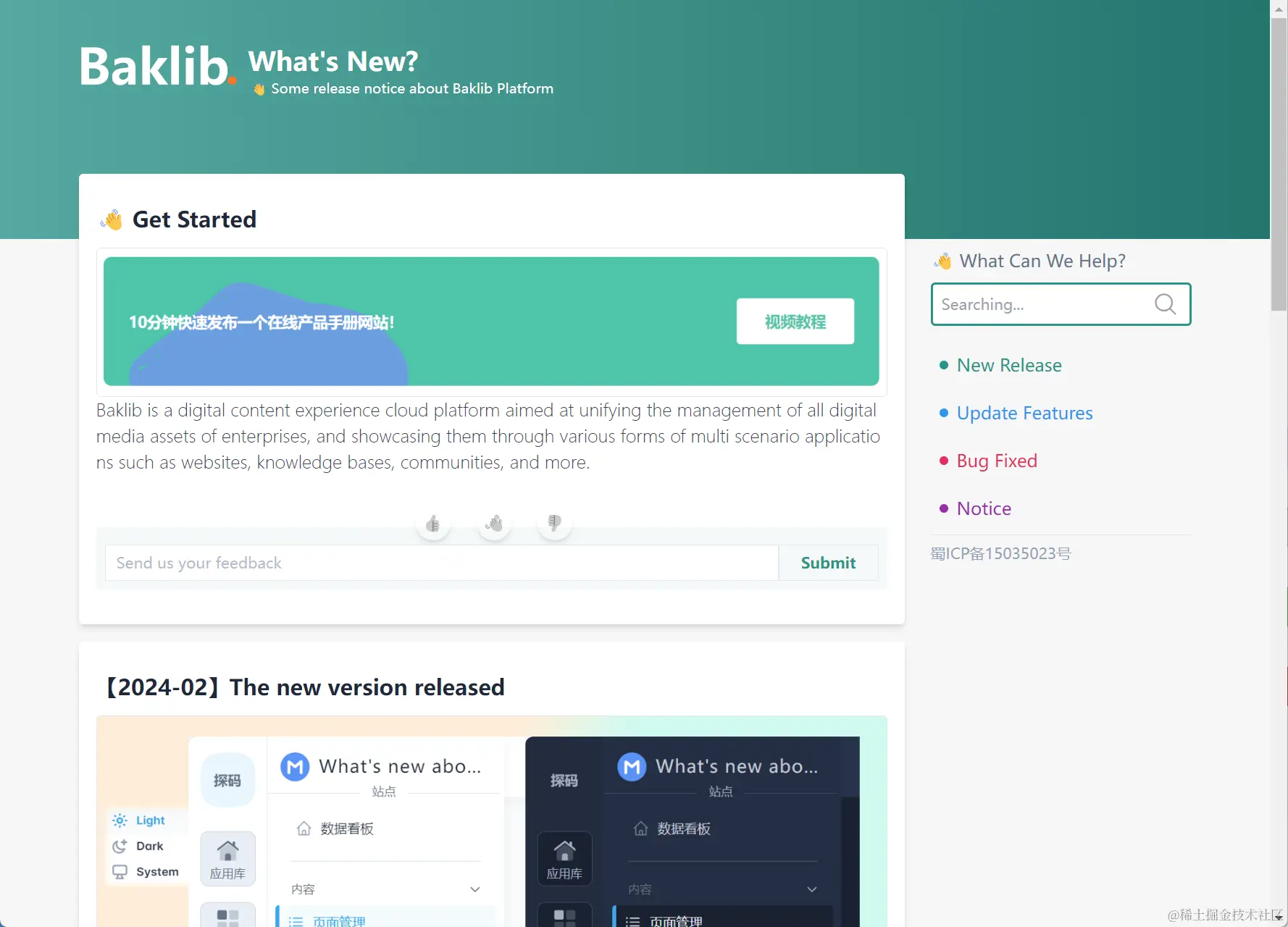 如今,大多数知识库都提供一个专门的新闻和更新板块。该板块可以包括社区公告、产品更新、新版本发布、平台已知问题等内容。如果您的公司提供SaaS服务,那么您可能会定期推出更新。