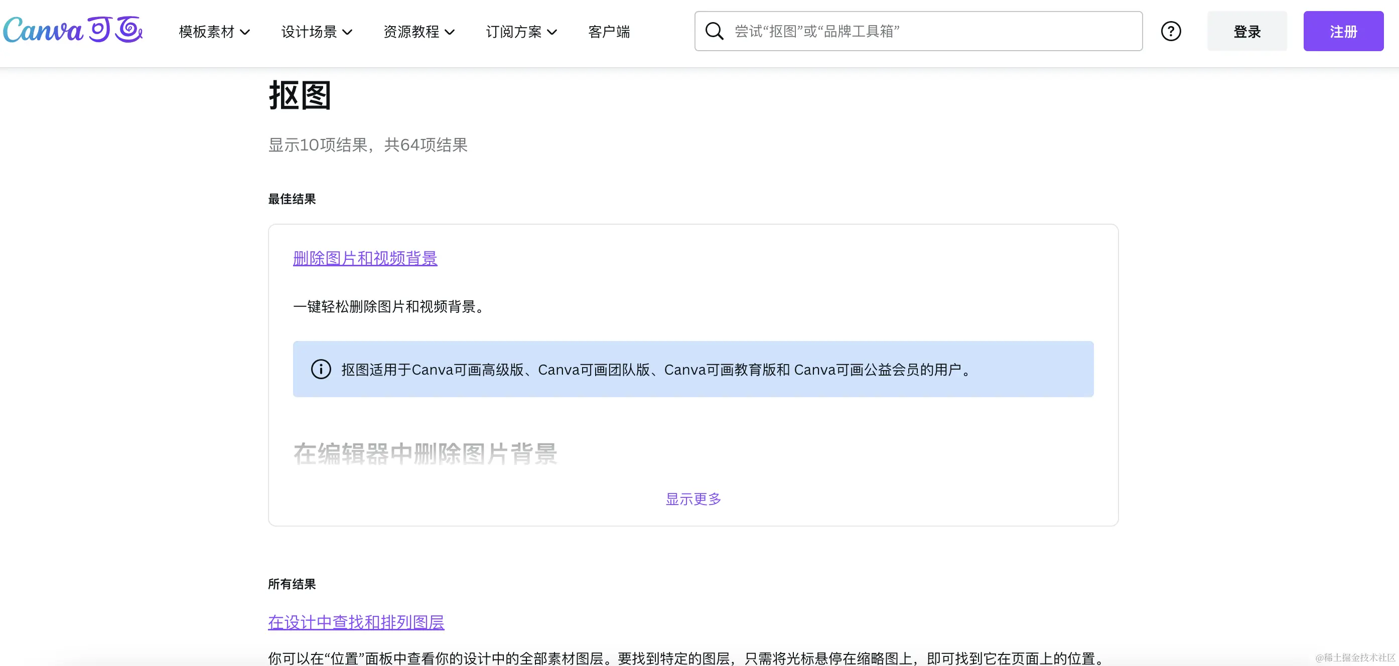 最后,Canva还具有自动完成搜索功能,根据先前的历史数据预测客户的搜索。