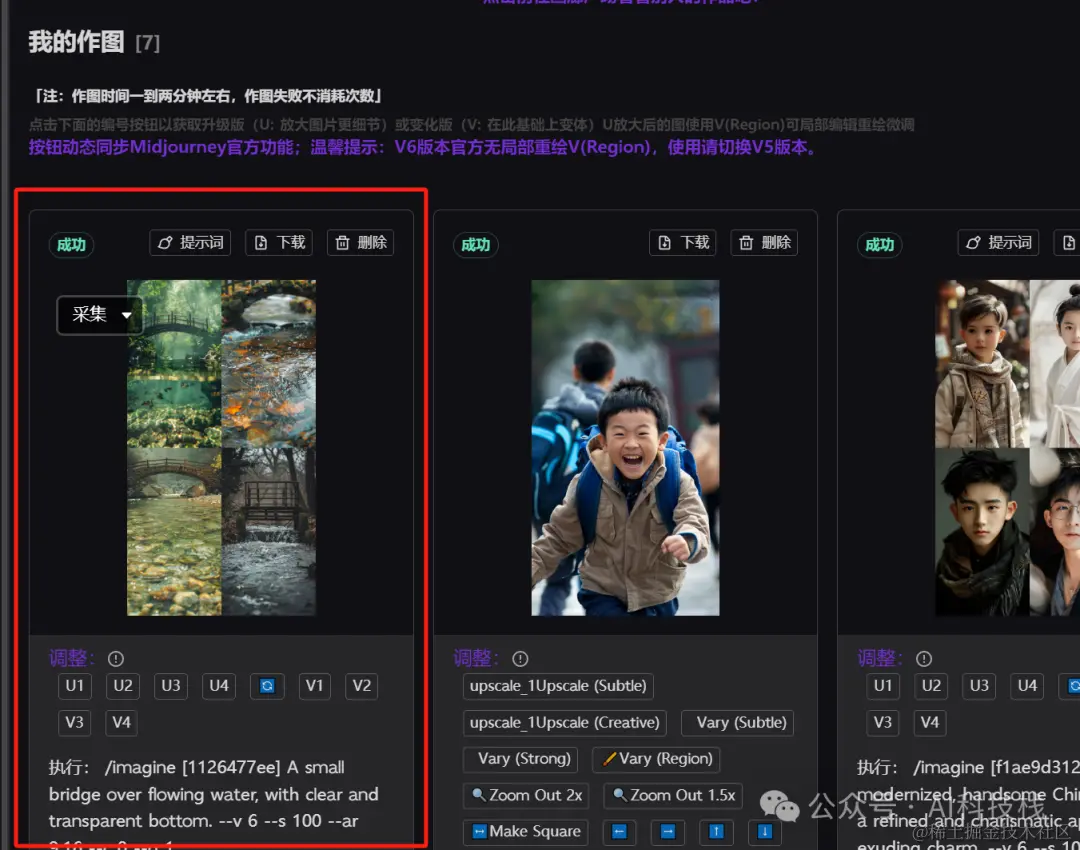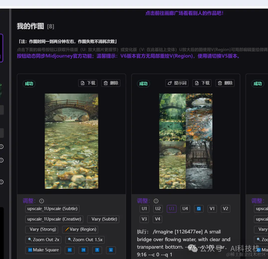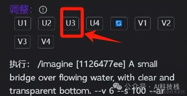 这个他会一次性生成4张图,如果你需要单张图,点击调整下方的U1,U2,U3,U4 代表1-4张图;