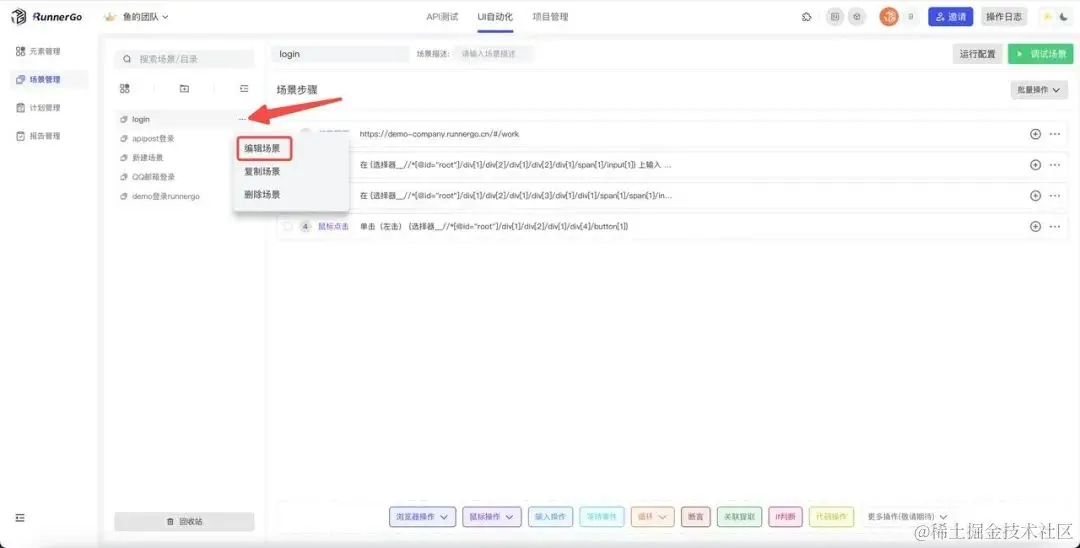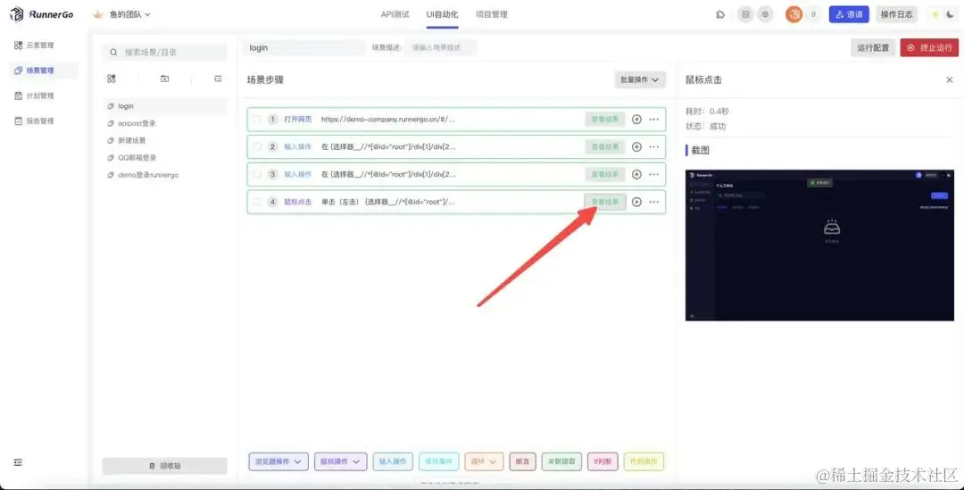 RunnerGo的UI自动化测试功能基于录制插件,为测试团队节省了大量时间和精力。使用录制插件,你可以轻松地录制和回放UI操作,而无需手动编写繁琐的测试脚本。这样,UI自动化测试的重复性工作可以交给工具完成,提高测试效率和准确性。
