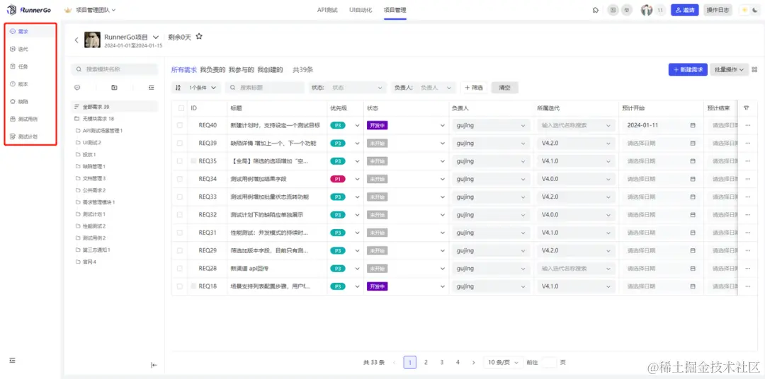 RunnerGo不仅仅是一个测试工具,它还内置了项目管理系统,这一点对于希望减少内部沟通成本、提高项目管理效率的团队来说具有极大的吸引力。它集成了Postman等工具的功能,并且可以替代项目管理工具(如Jira)对项目进行管理,促进测试团队与开发团队、产品经理之间的紧密协作和有效沟通。通过项目管理功能,测试人员可以与其他团队成员共同跟踪项目进展、处理缺陷,并进行有效的任务分配和协作。