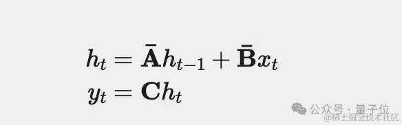 S4通过三个连续参数矩阵A、B和C将它们互联,具体形式表现为以下两个方程(Mamba论文中的1a和1b):