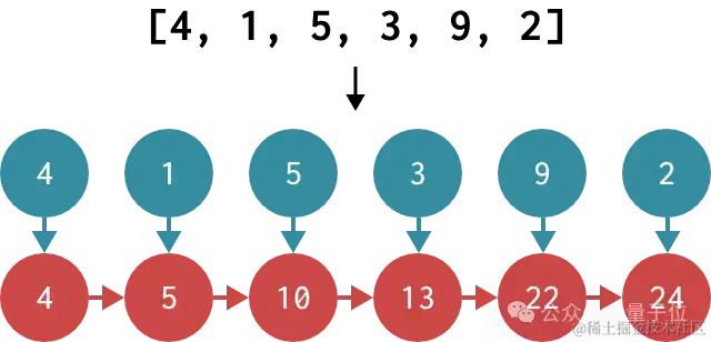 要计算前缀和,我们需要获取一个输入数组 [x1,x2,… ,xn] ,并返回一个输出数组,其中每个元素都是该项目及其之前项目的总和。