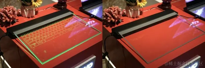 除了透明显示屏,联想还为这款概念笔记本配备了纯平的透明触摸式键盘,完全替代了实体按键。